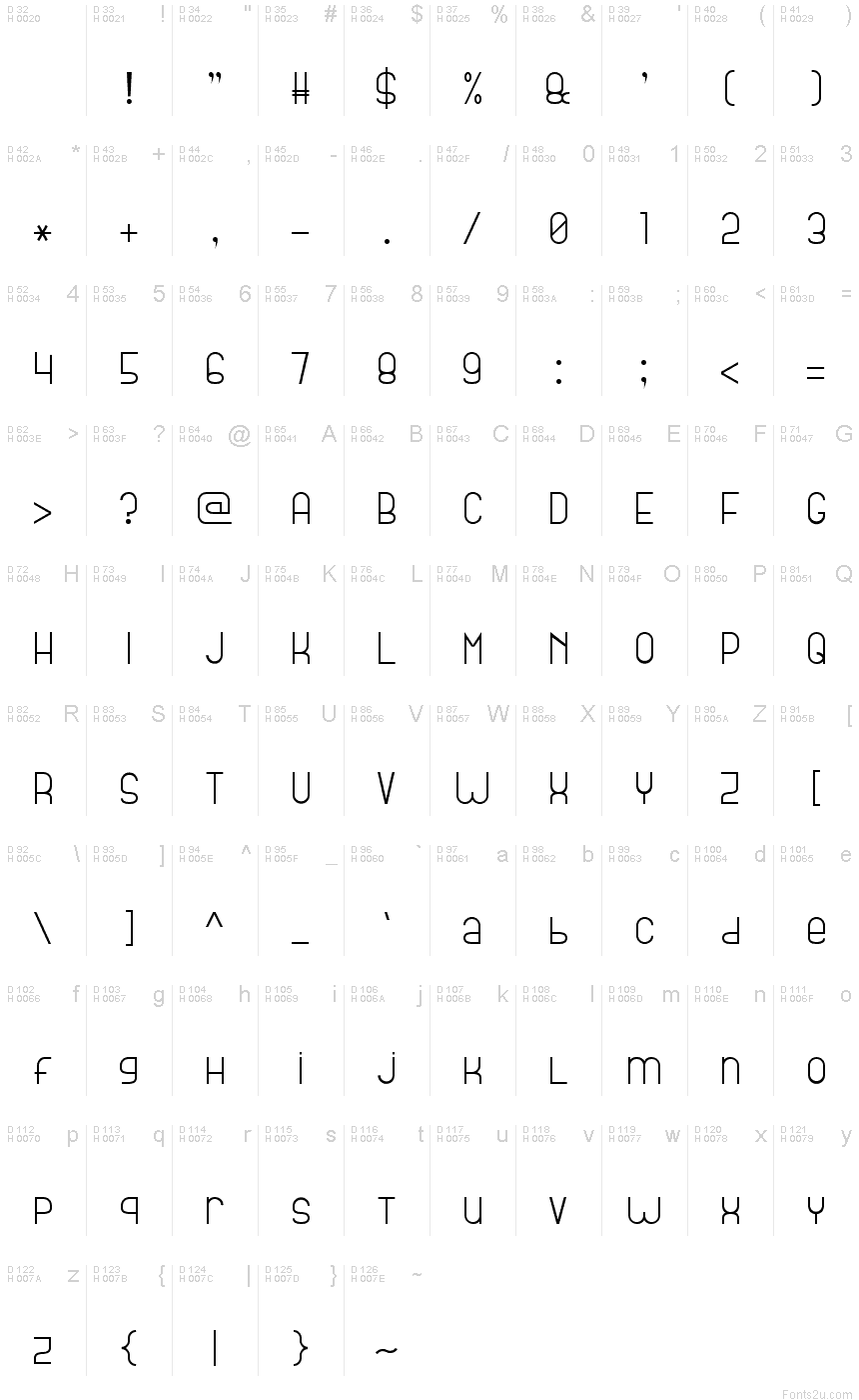 Proszę korzystać z menu rozwijalnego aby podglądać różne mapy znaków zawierane do tej czcionki.