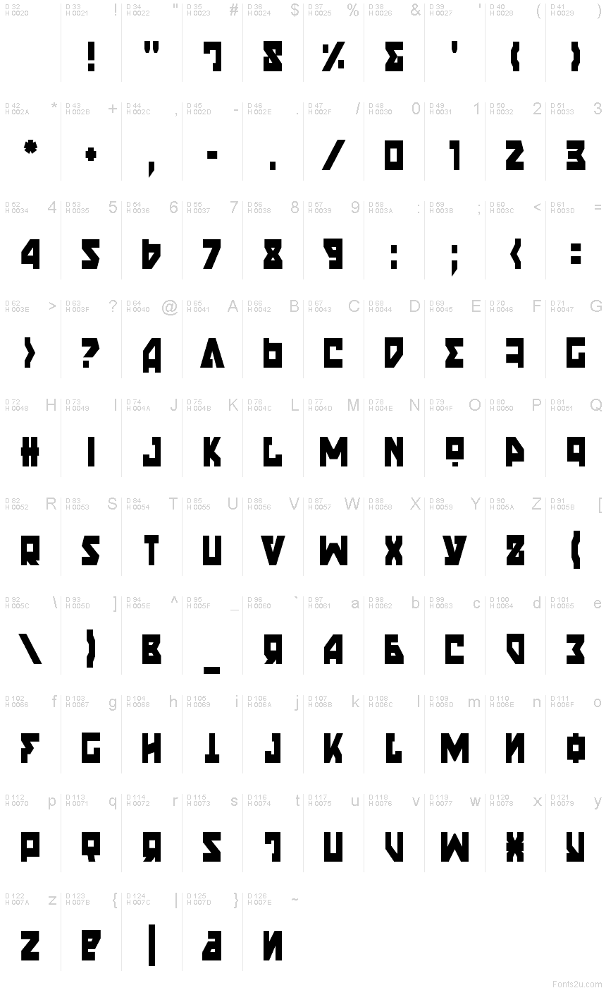 Proszę korzystać z menu rozwijalnego aby podglądać różne mapy znaków zawierane do tej czcionki.