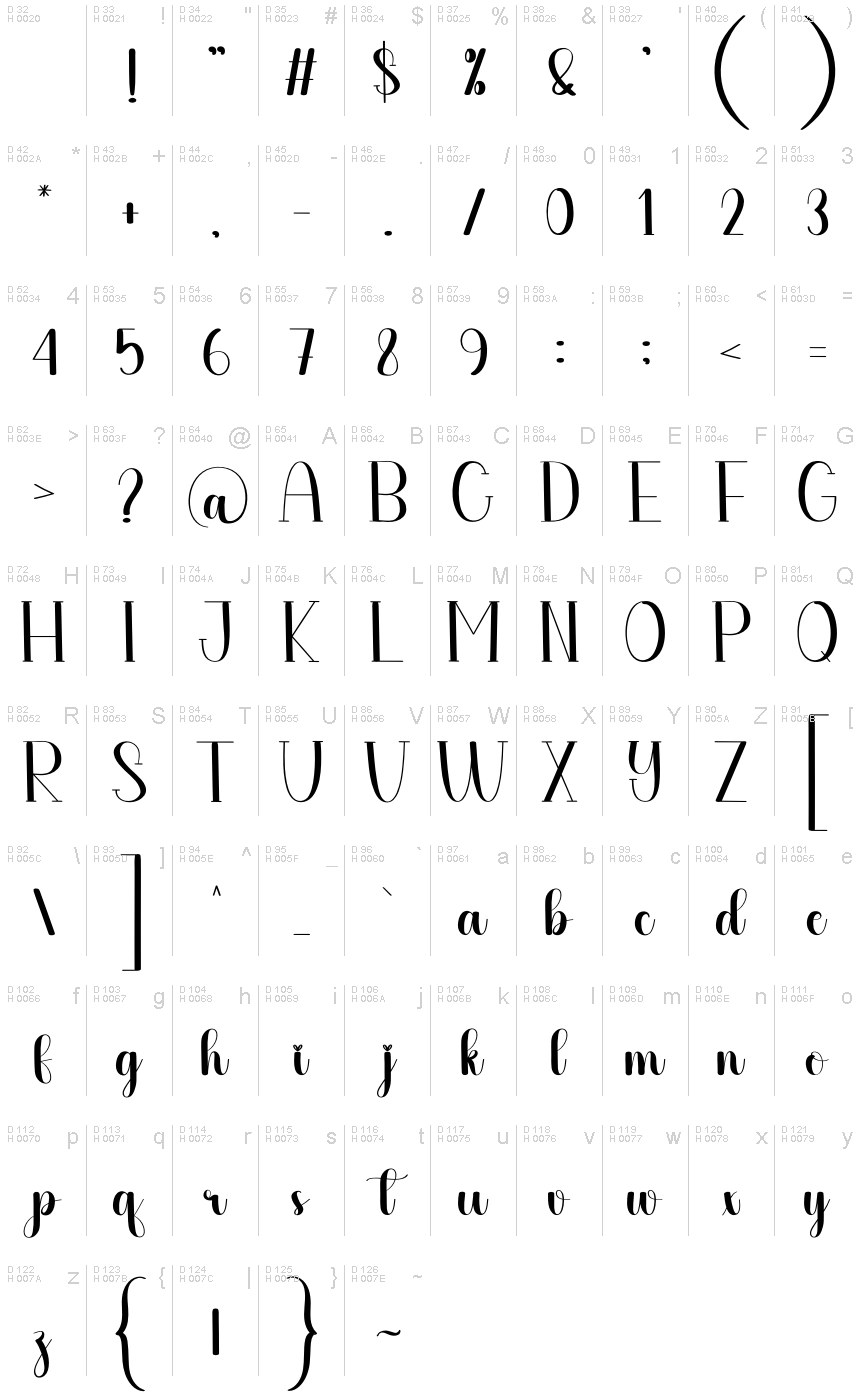 Proszę korzystać z menu rozwijalnego aby podglądać różne mapy znaków zawierane do tej czcionki.
